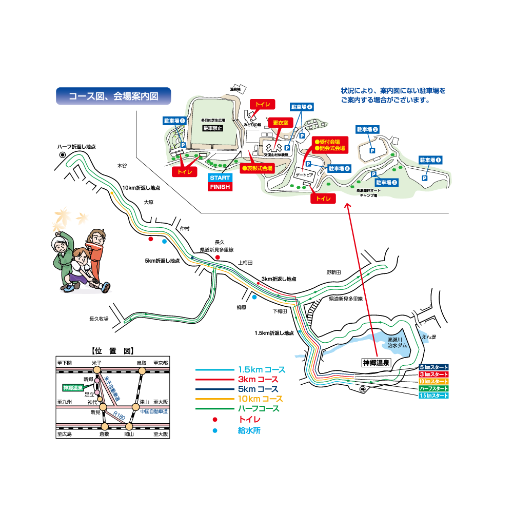 ・駐車場は、限られた台数しか利用できないため、お車での来場の際はできる限り、乗り合わせでお願いします。また、大会開催中は交通規制のため、車の出入りができないことがありますので、ご注意ください。